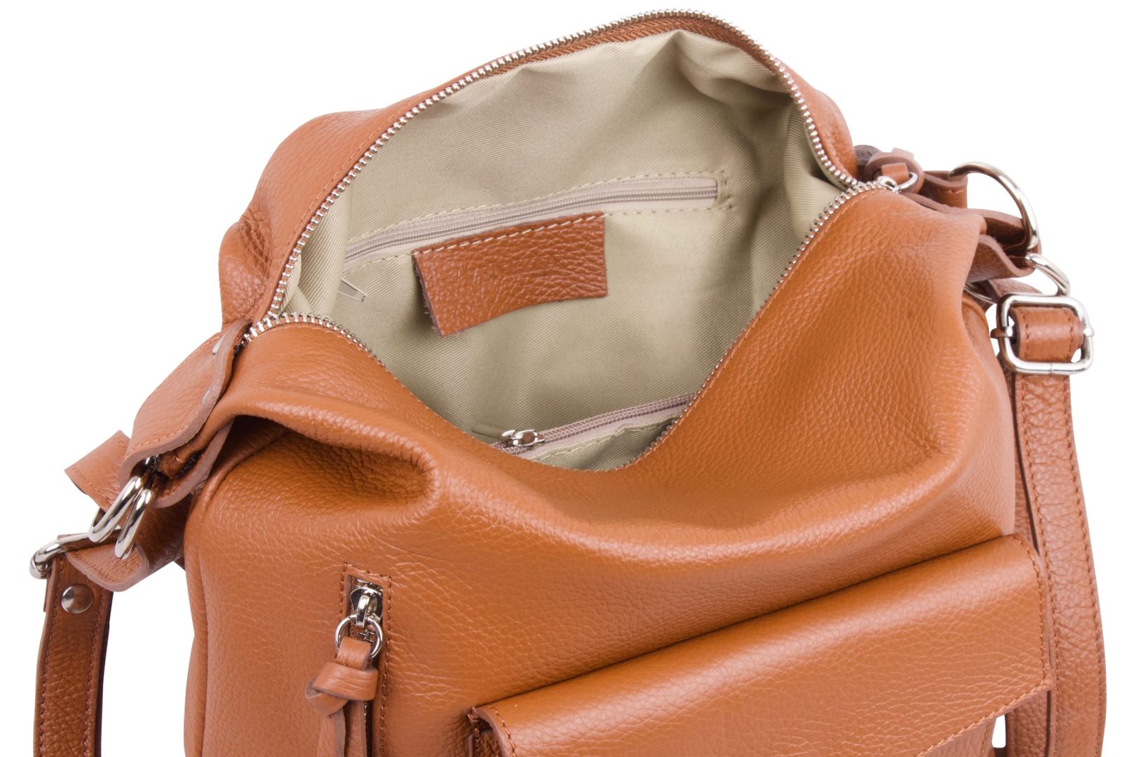 | Extras: | 4 Metallfüße schützen den Taschenboden vor Verschmutzung und Abnutzung. Aufgesetztes Fach mit Druckknopf. Fach mit Metall-Reißverschluss an der Frontseite. Fach mit Metall-Reißverschluss an der Rückseite. |